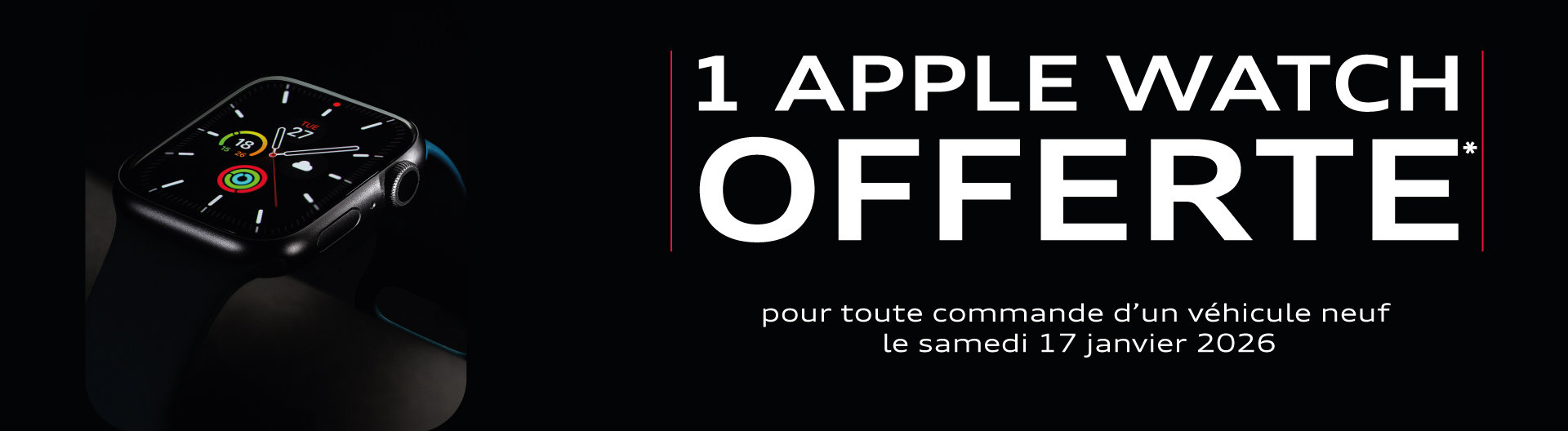 * 1 Apple Watch offerte pour toute commande d’un véhicule neuf le samedi 17 janvier 2026 chez Audi Valodis. Apple Watch SE d’une valeur de 269€. Montre remise le jour de la livraison du véhicule.